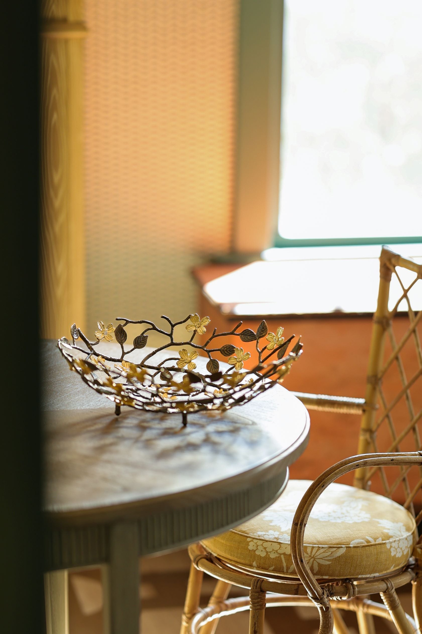Inspired by the captivating "Butterfly Gingko" tree, this collection celebrates the idea of metamorphosis with Aram crafting leaves and twigs in metal that seemingly take flight from the branches as butterflies.